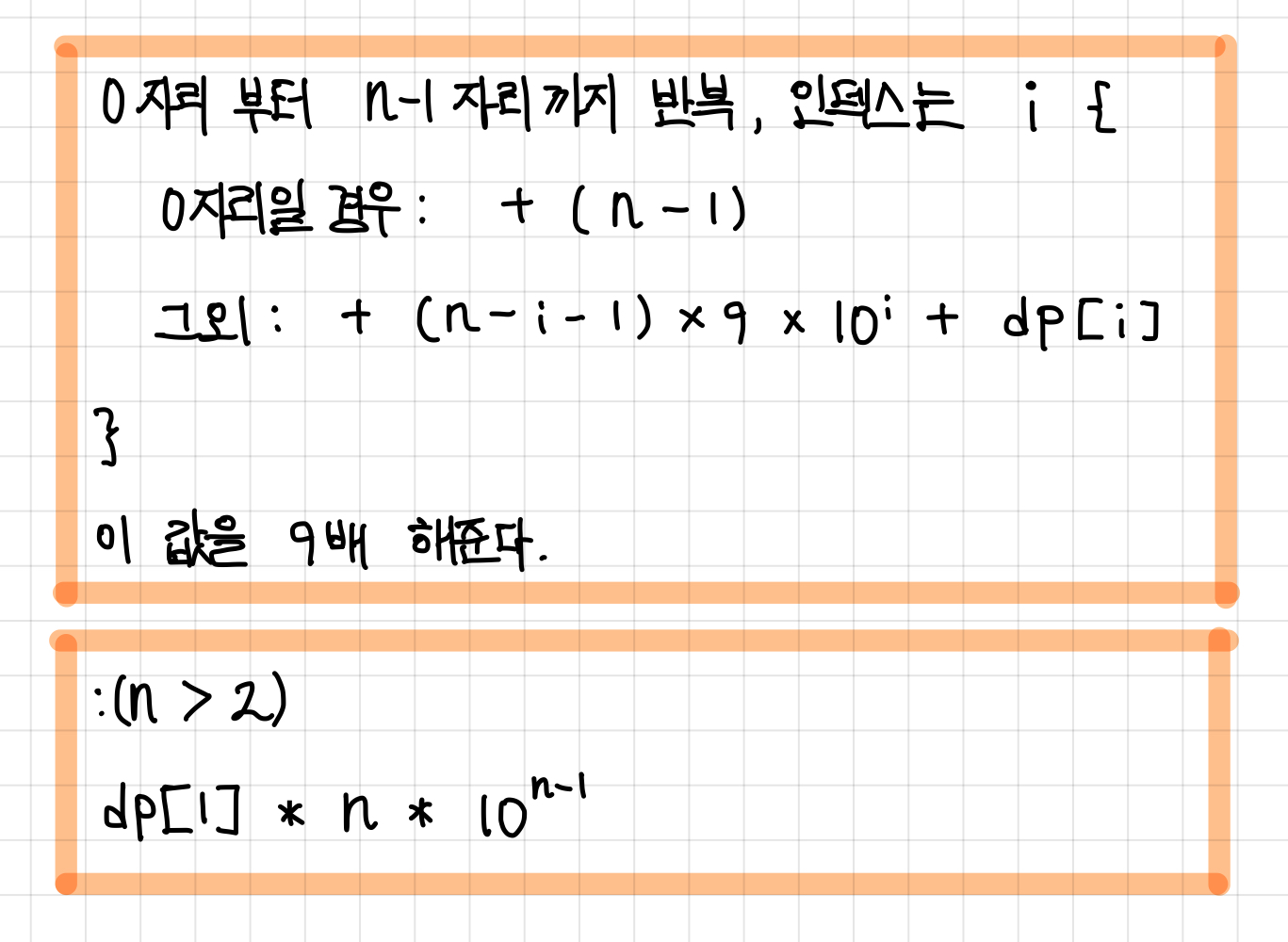 점화식을 구해서 각 자릿수에서 0부터 9까지가 각각 몇번 나오는 지를 구했다면 한 30퍼센트까지 한 것이다.