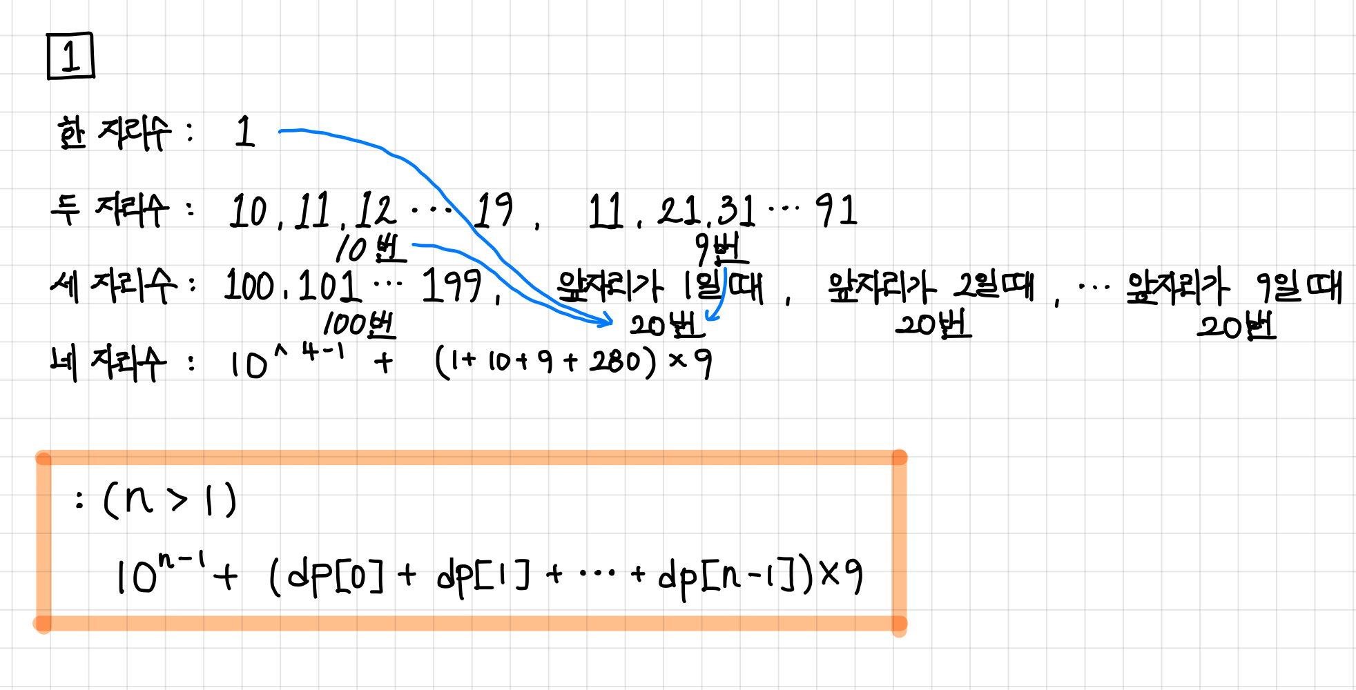 이를 토대로 네 자리수 까지 구해보자.▼