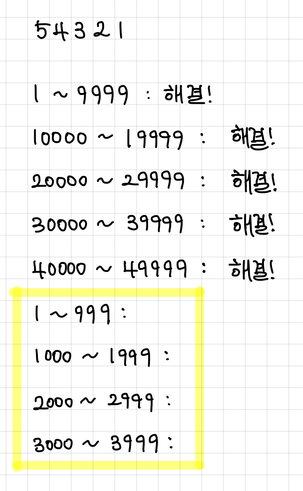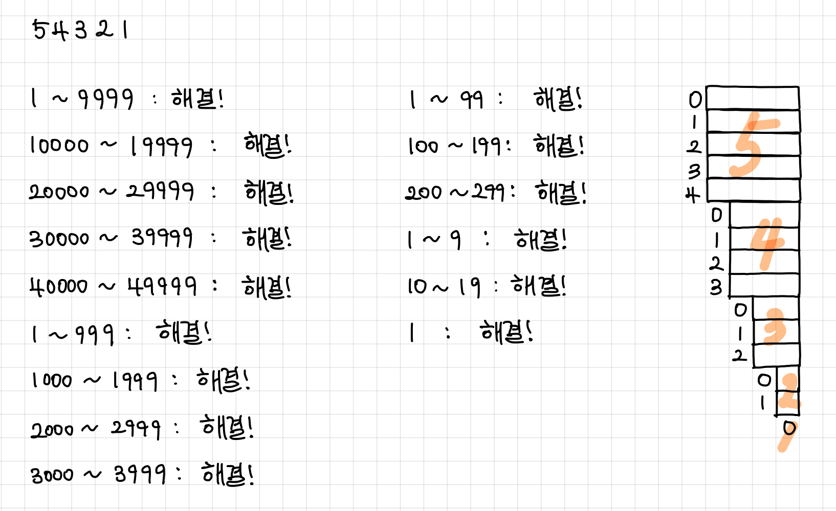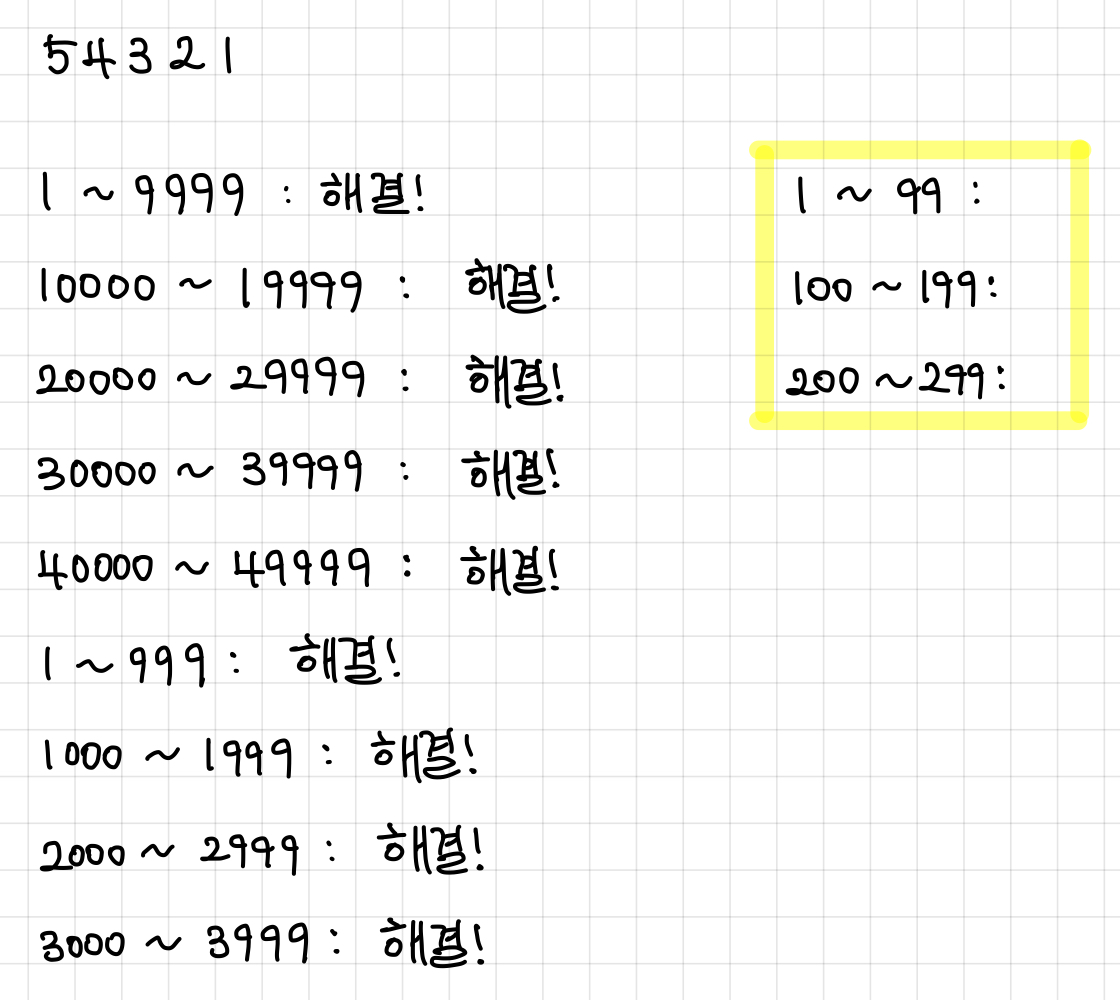 먼저 54321을 10000, 20000, 30000, 40000으로 쪼개준다.▼