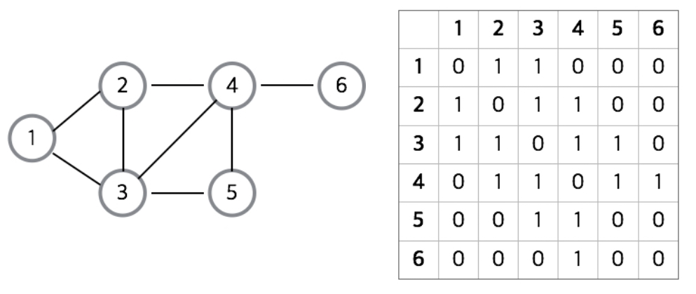 완성된 배열의 모양은 1, 2, 3, 4, 5, 6의 정점을 연결하는 노드에 다른 노드들이 인접 정점이라면 1, 아니면 0을 넣어준다.
