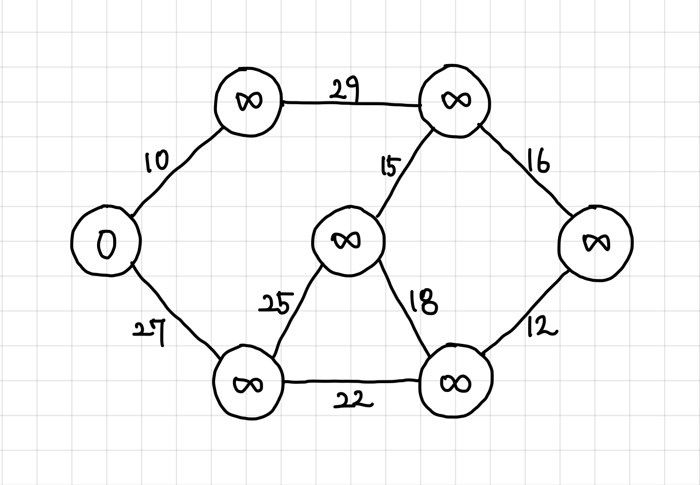 현재는 29보다는 27이 더 작으므로, 다음에는 가중치 27짜리 간선을 타고 이동한다.