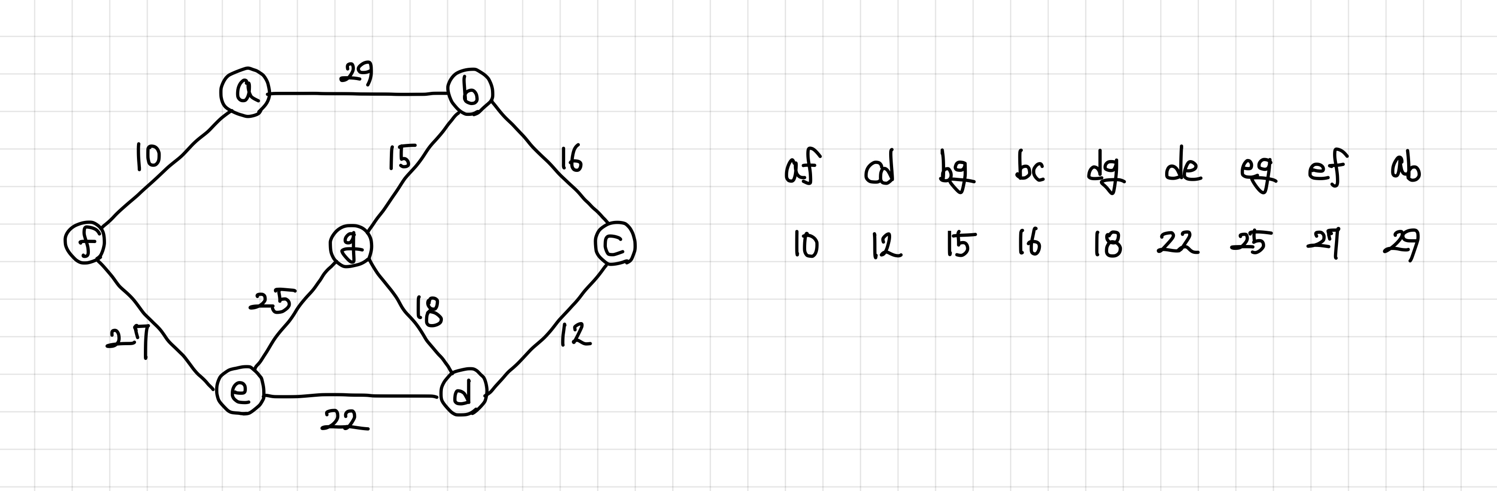 10. 이렇게 마지막 간선까지 확인하게 되면, 최소 신장 트리의 정보를 얻을 수 있게 된다.