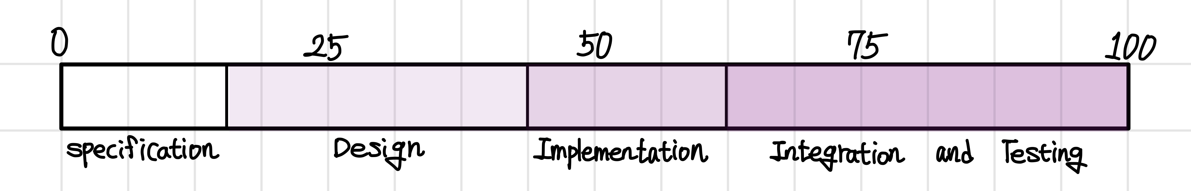 따라서 Implementation 비중이 굉장히 적고 Integration과 Testing의 비중이 크다.