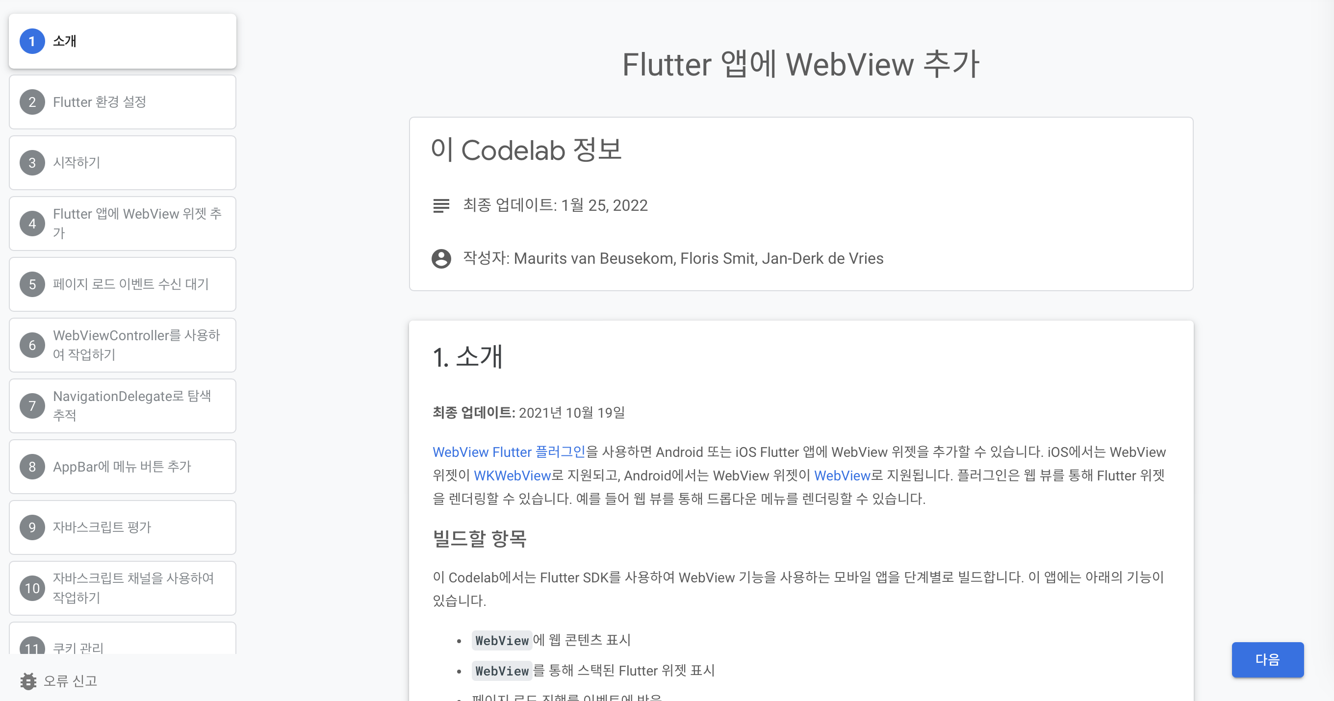 Flutter 공식에서 제공하는 튜토리얼의 최종 업데이트는 2022년 1월 25일인데, webview_flutter의 업데이트는 2023년 5월 23일에 4.2.1버전으로 이루어졌다. ▼