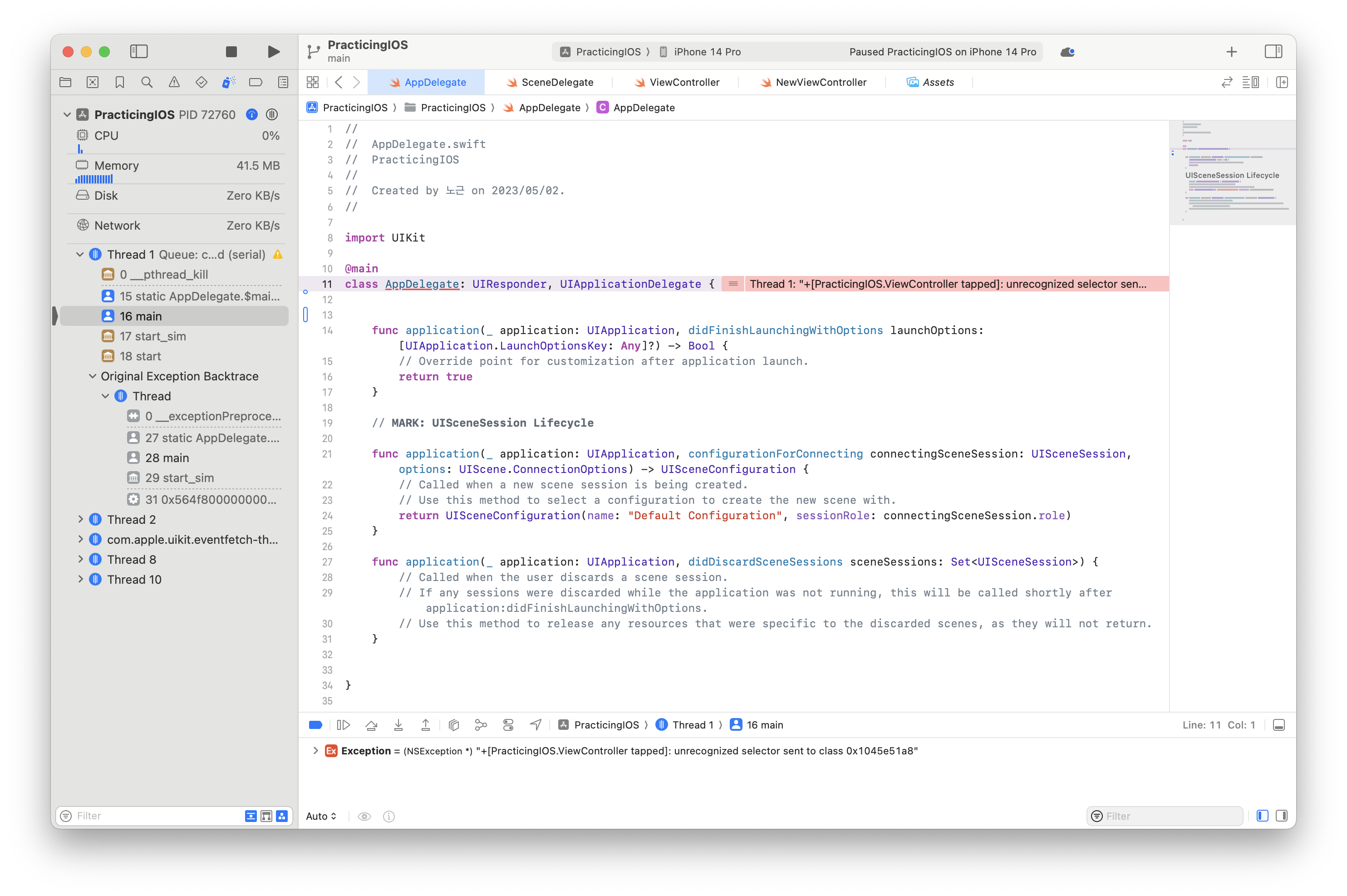 스토리보드를 사용하지 않고, 코드로만 UI 구성하기를 연습하고 싶어서 스토리보드를 없애고 하나씩 확인을 해보고 있었다.