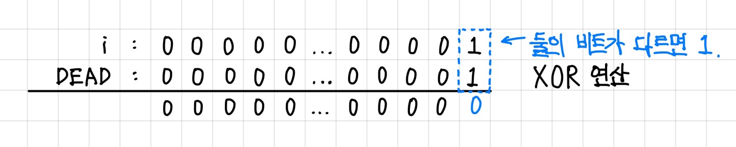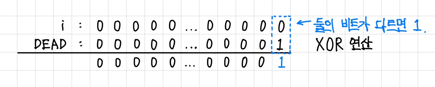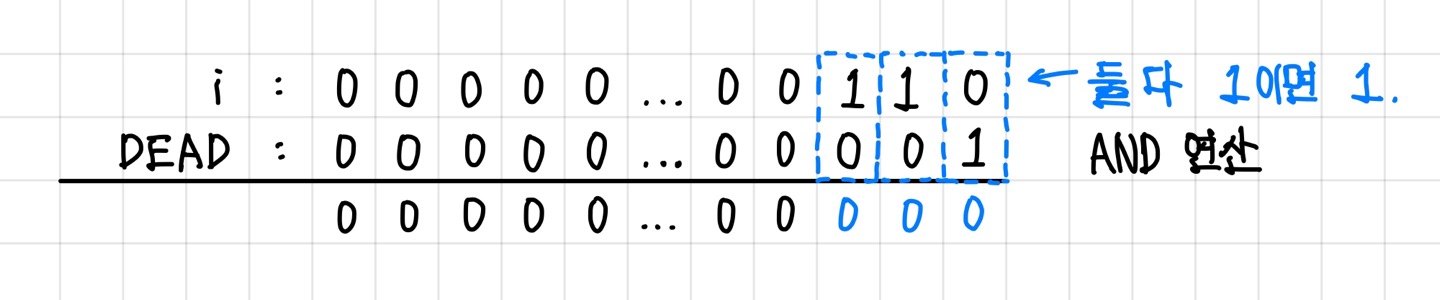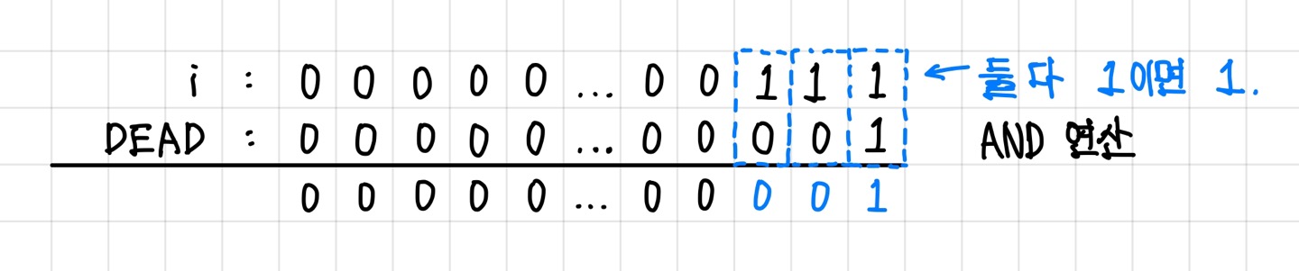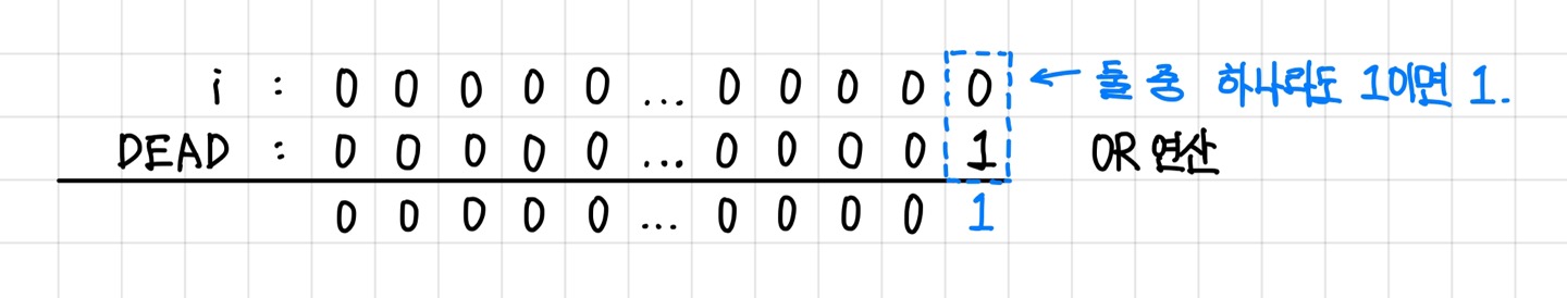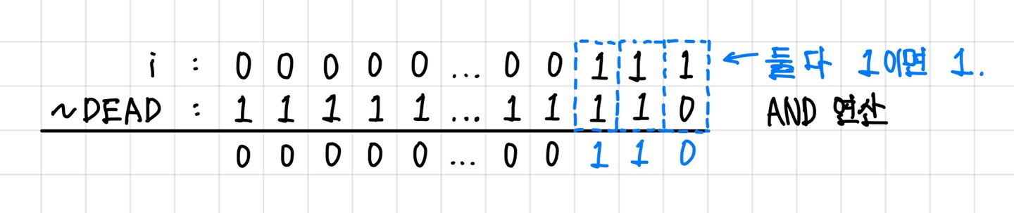 비트 반전을 했기 때문에 DEAD칸 외의 다른 칸들의 값은 전부 유지되고, DEAD칸만 0으로 바뀐다. ▼