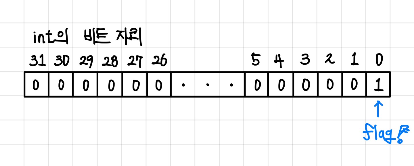 즉, 1bit 크기를 찾을게 아니라, int를 1bit 플래그가 32개 붙어있다고 생각하자는 것이다.