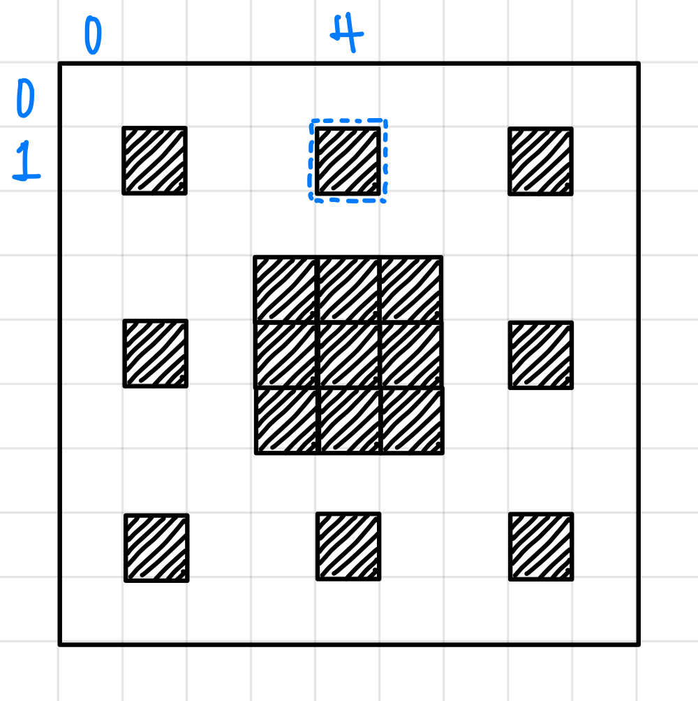 예시 좌표가 0부터 시작하지 않아서 약간은 차이가 있지만, (4, 1)는 가운데 검정 블럭에 있지 않다.
