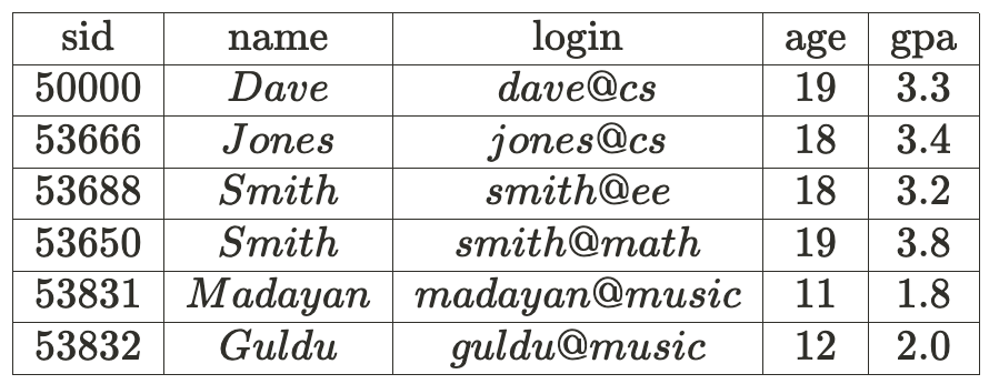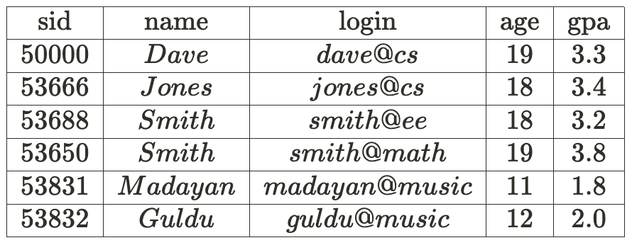 `Student` 릴레이션에 추가하여 두 번째 릴레이션이 있다고 해보자.▼