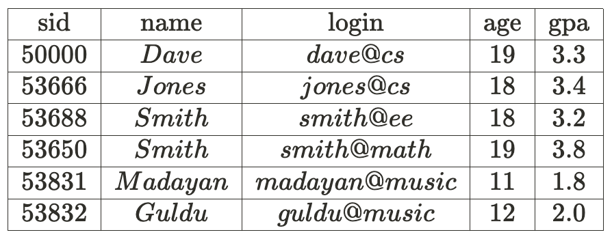 INTO Students (sid, name, login, age, gpa)