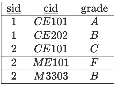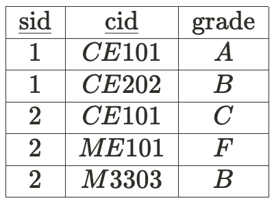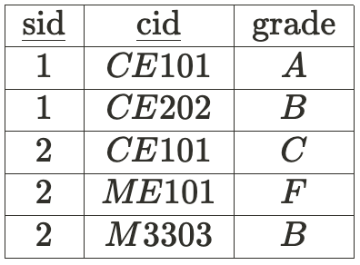 또, sid와 cid가 grade를 결정한다.