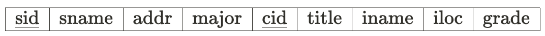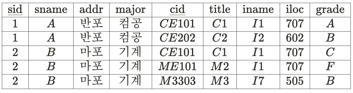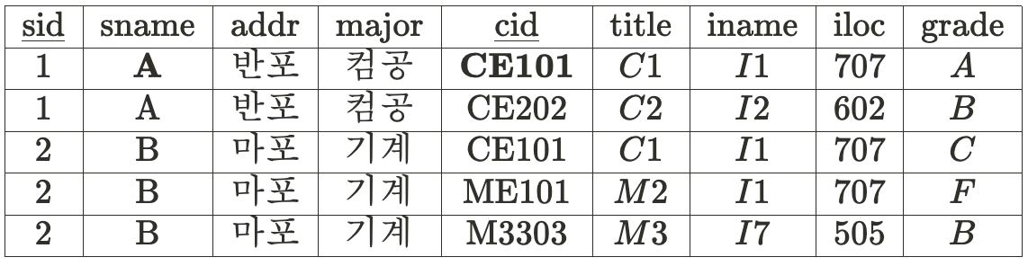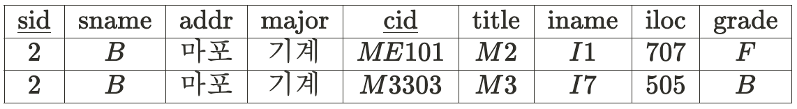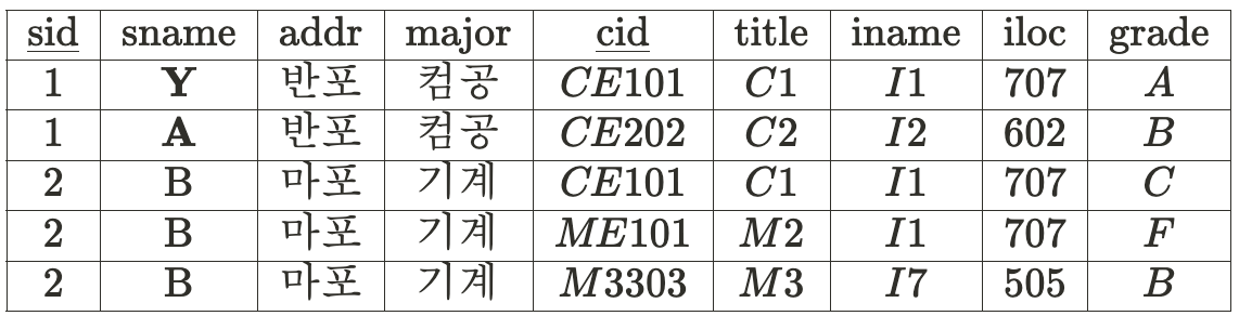 sid → sname, addr, major 의 관계를 보여주고,