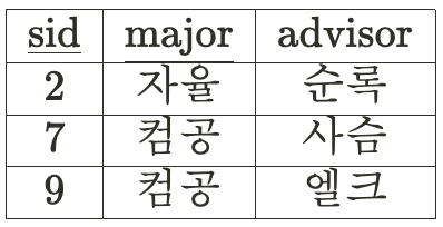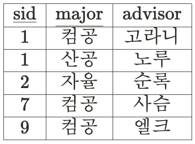 지금의 관계는 sid와 major가 advisor를 결정한다.