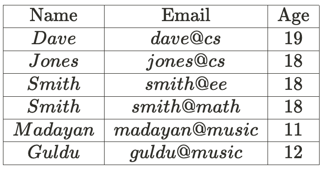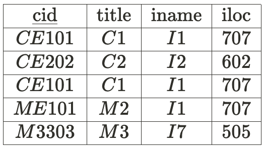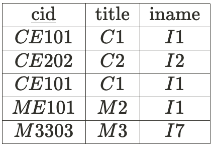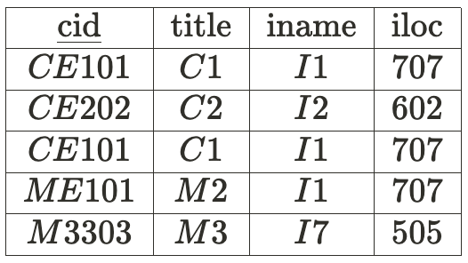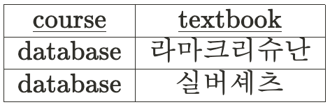 아래의 테이블은 database 담당 교수는 실버셰츠와 라마크리슈난으로 강의를 해야한다는 조건을 토대로 만들어졌다. ▼