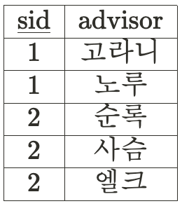 이렇게 분리를 하게 되면 학생 정보를 제거해도 전공을 맡은 advisor의 정보가 지워지지 않는다.