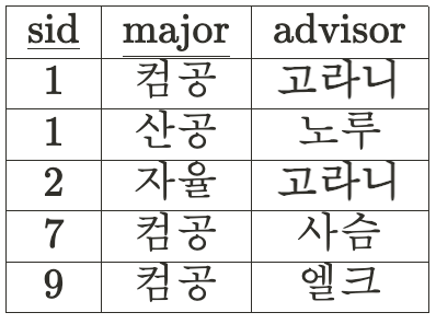 위의 sid가 sname과 addr, major를 결정하긴 했지만 table의 모든 attribute를 결정한게 아니다.