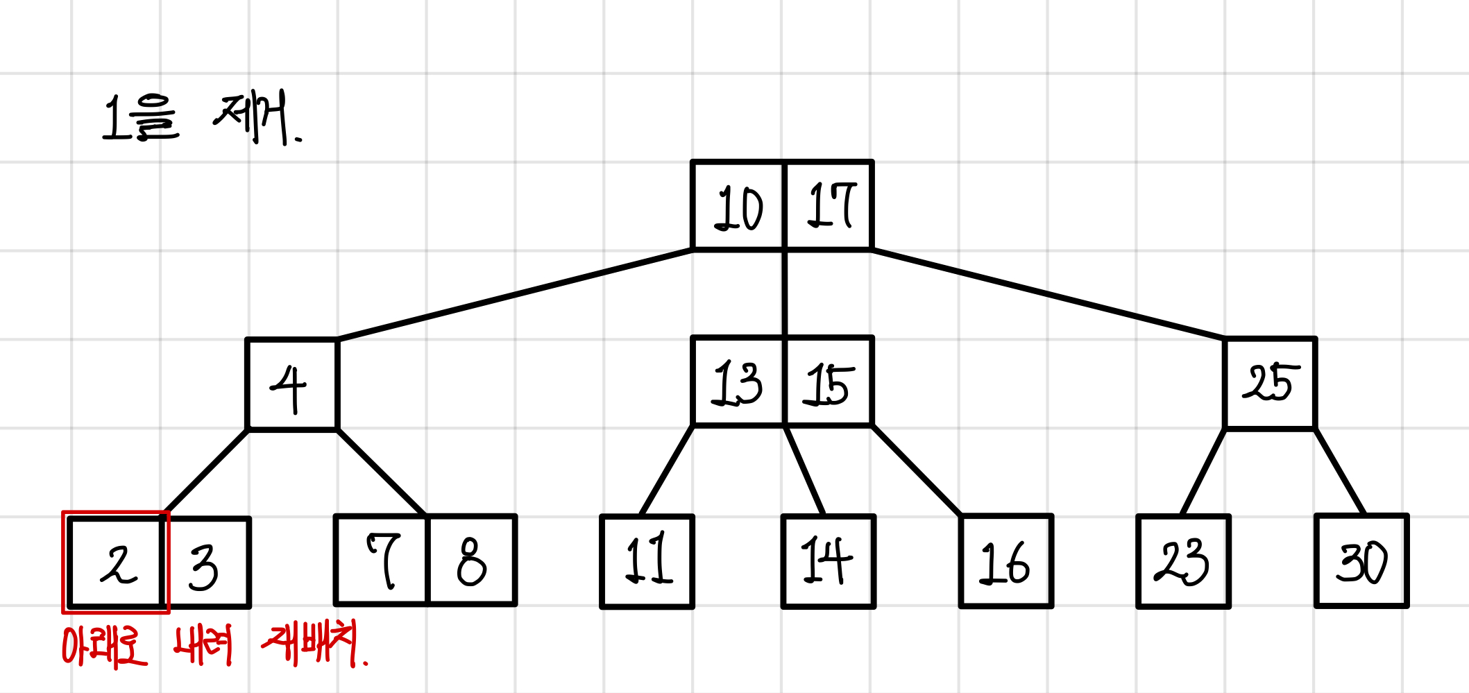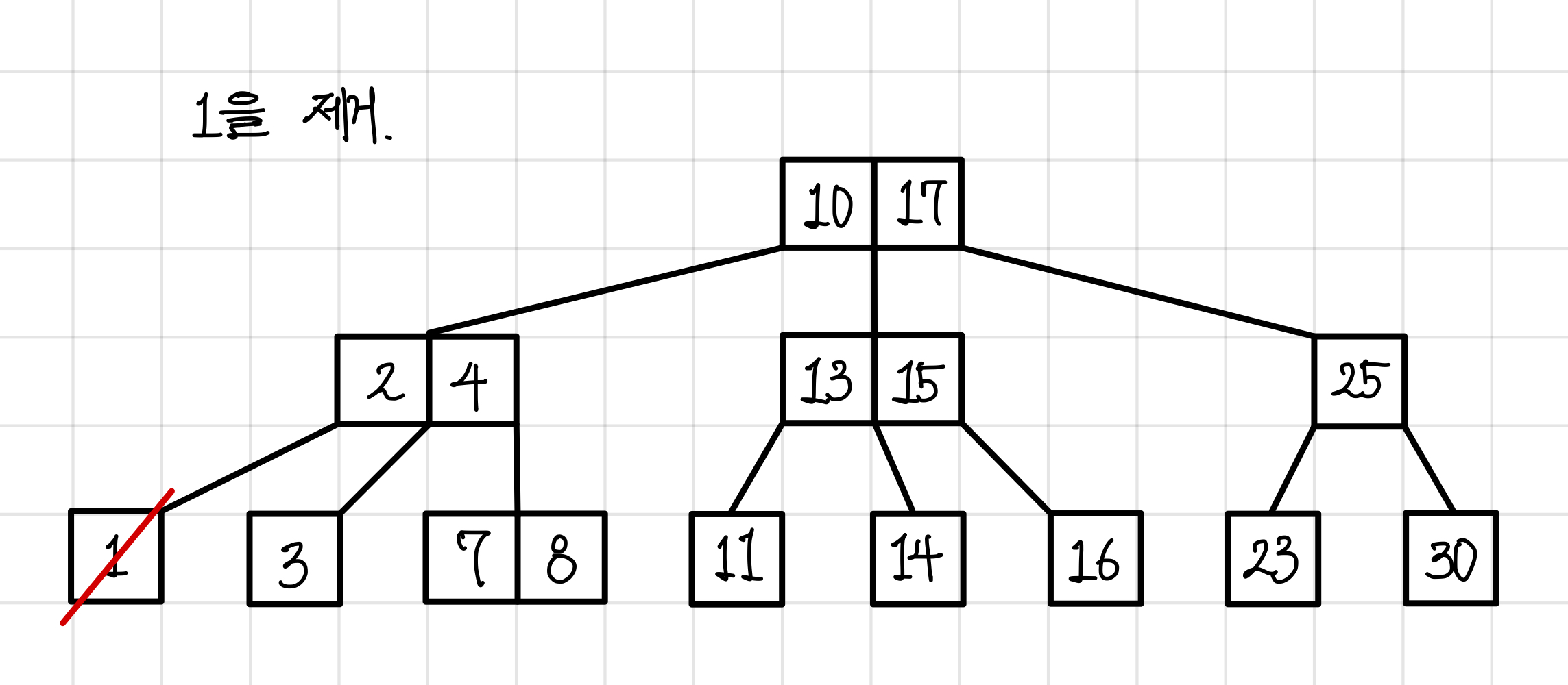 1을 제거하는 순간 B트리 규칙을 위배하게 된다.