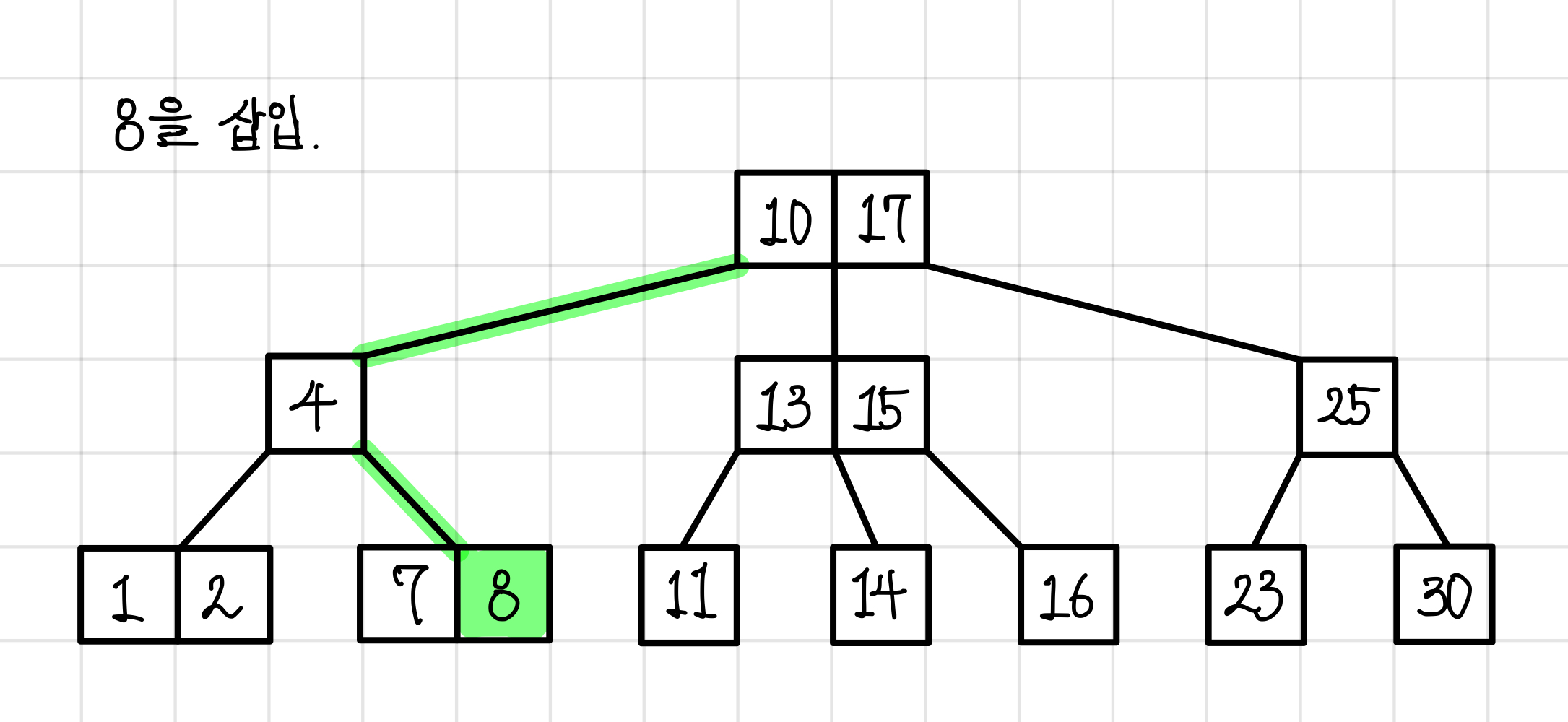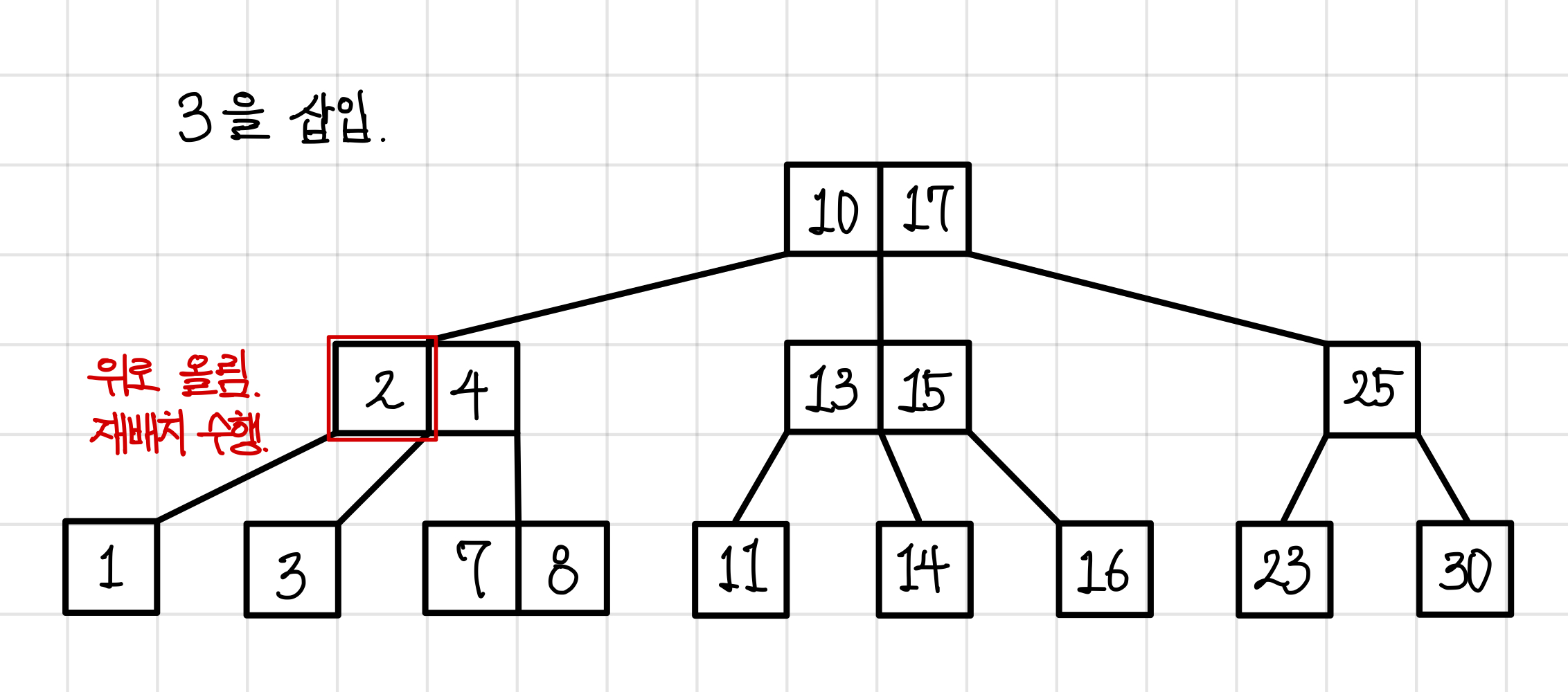 B트리의 규칙에 위배되지 않기에 그대로 삽입이 된다.▼