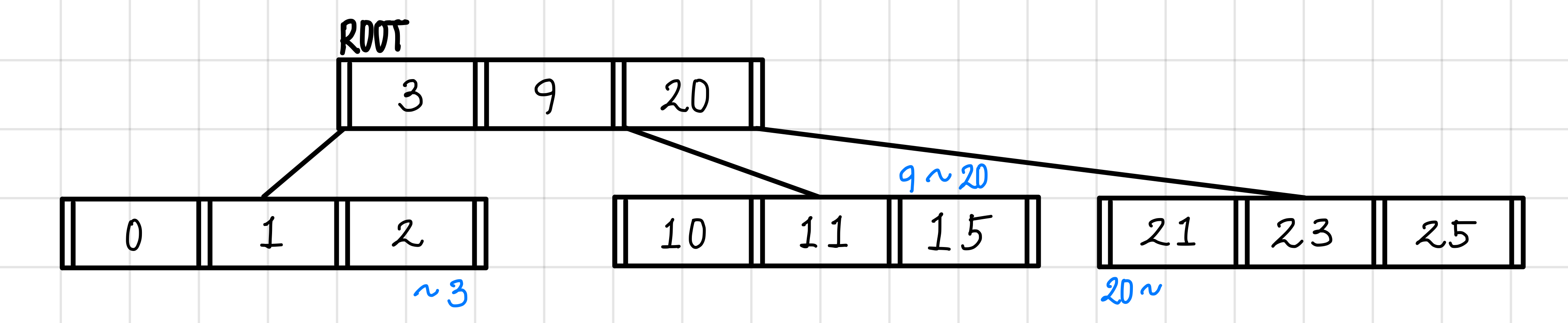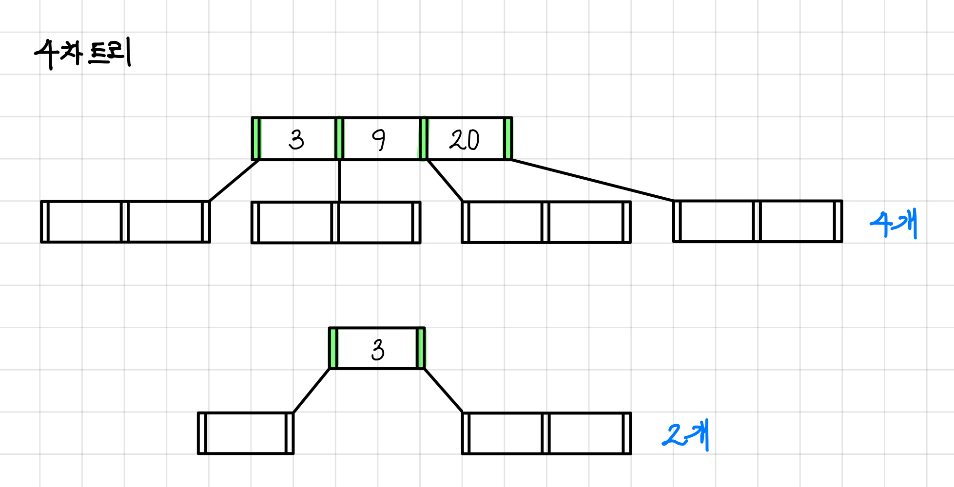 4. 특정 노드의 데이터(key)가 $K$개라면, 자식 노드의 개수는 $K+1$개여야 한다.
