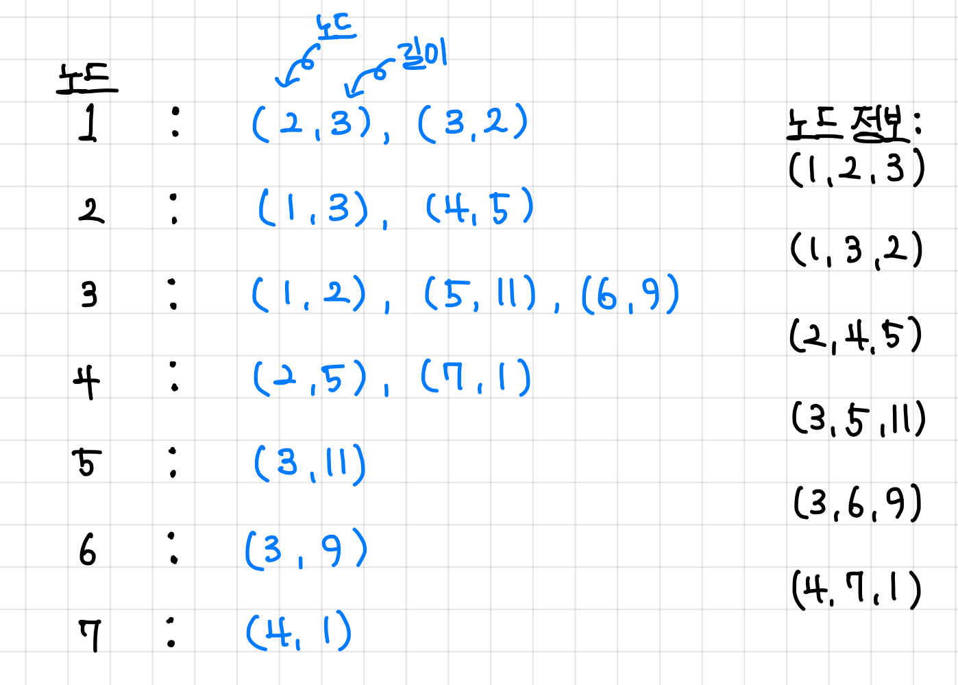 튜플의 내용은 (노드 인덱스, 길이) 이다.▼