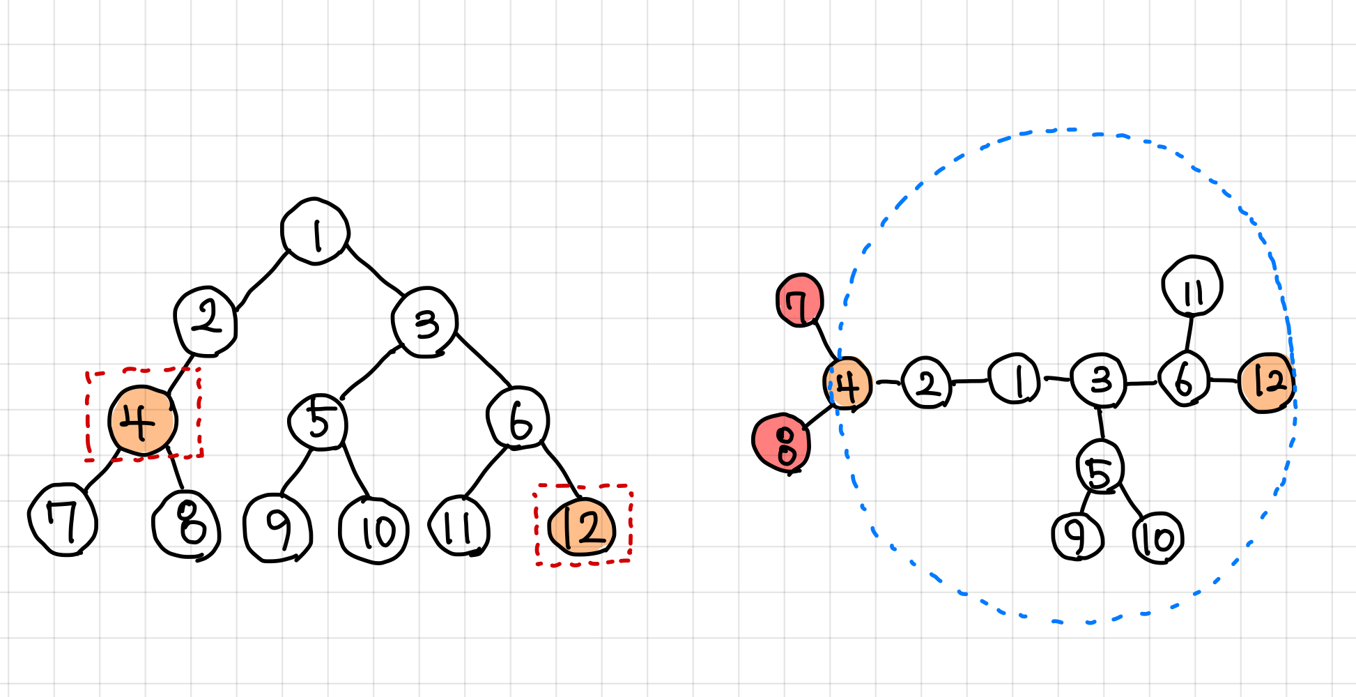 하위 노드가 아닌 중간이나 상위 노드를 고르게 되면, 원 안에 전부 들어가지 않게 된다.▼
