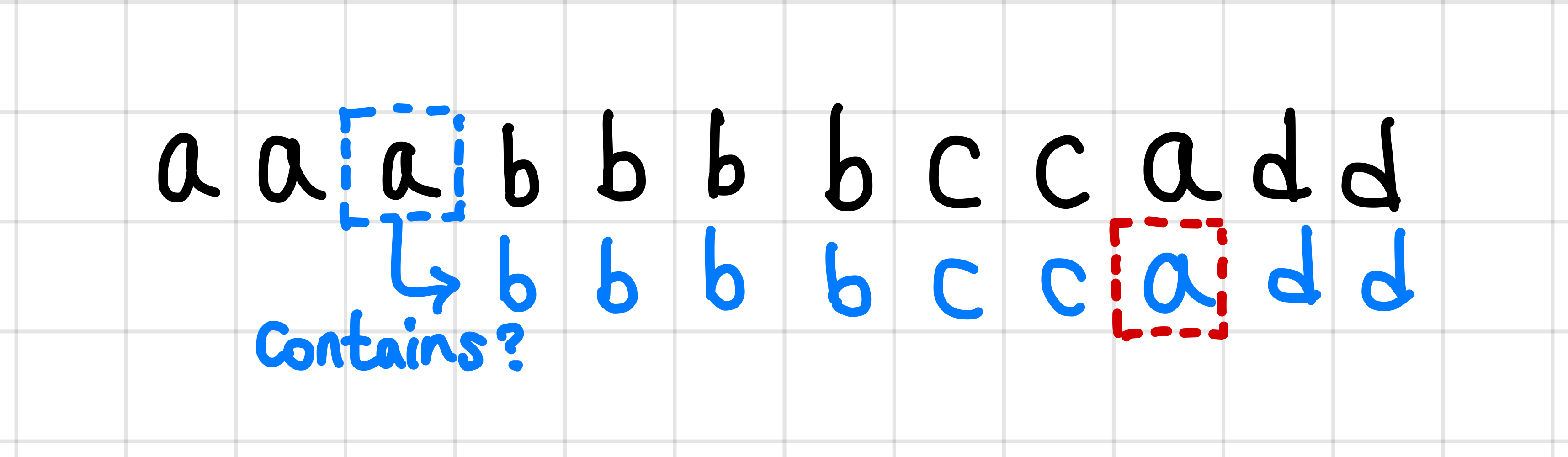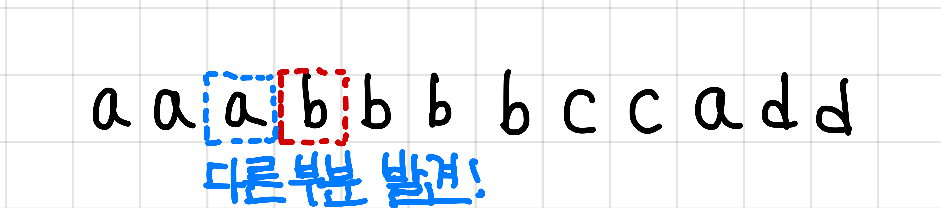 위의 경우 a가 뒤에 한 번 더 나오므로 그룹 단어가 아니다.▼
