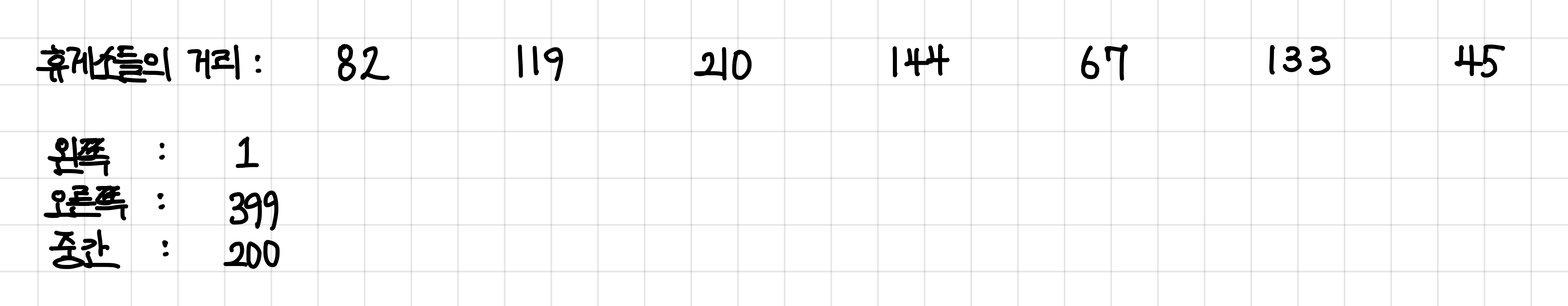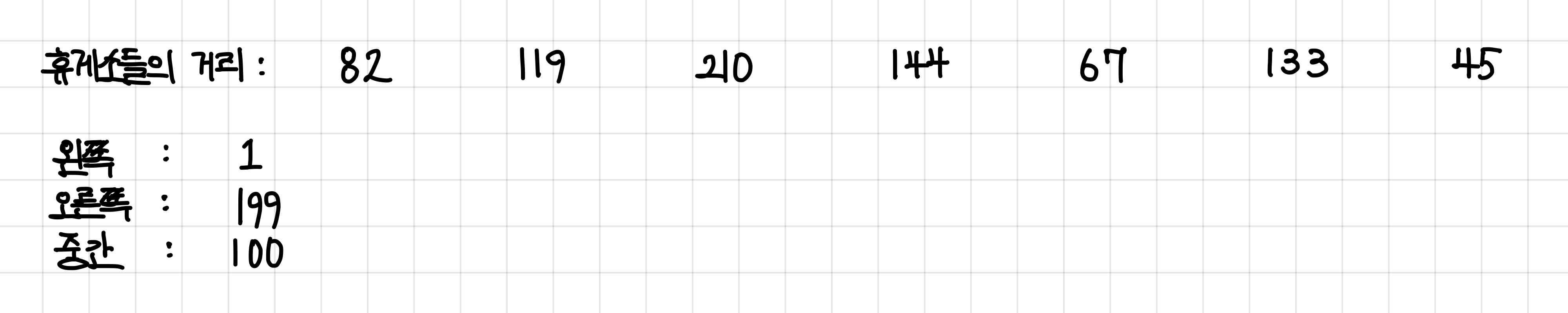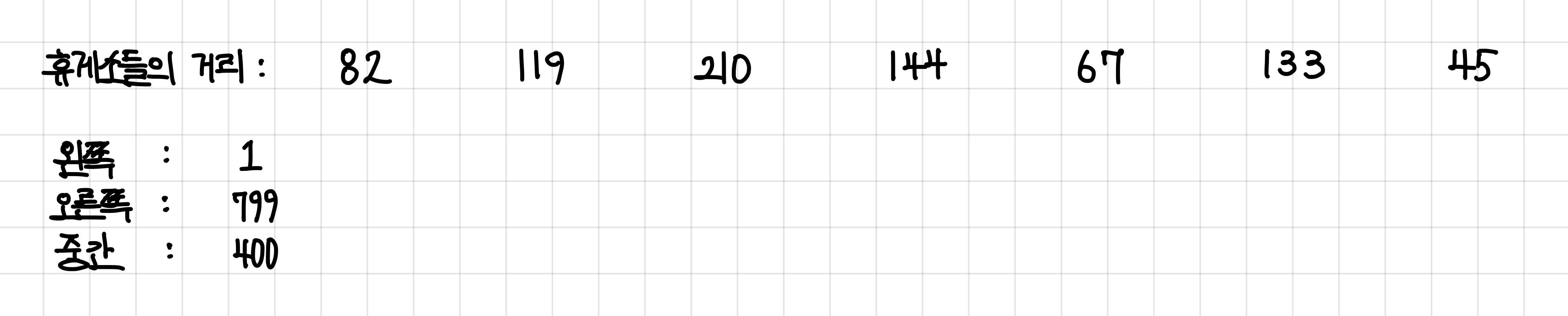현재 예시에서는 고속도로 길이가 800이므로 가장 오른쪽은 799가 된다.