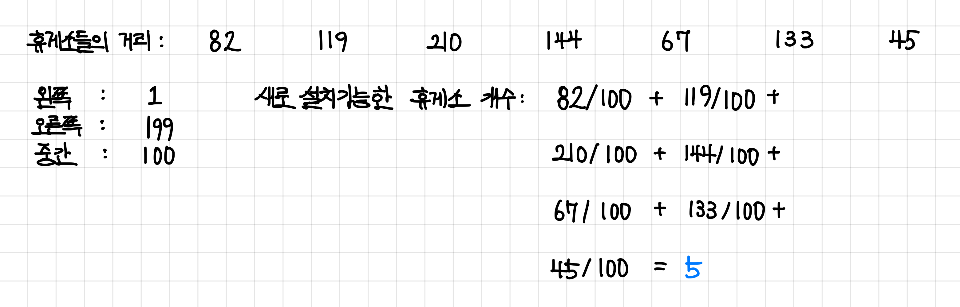 이렇게 설치할 휴게소 개수를 전부 더해서 문제에서 제시한 휴게소 개수와 비교해본다.▼