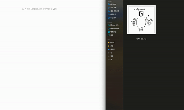 토글도 마크다운 문법과 같이 > 와 스페이스 로 빠르게 생성할 수 있다.