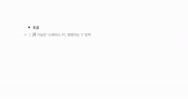 토글은 글을 접었다 펼 수 있게 해주는 블록이다.