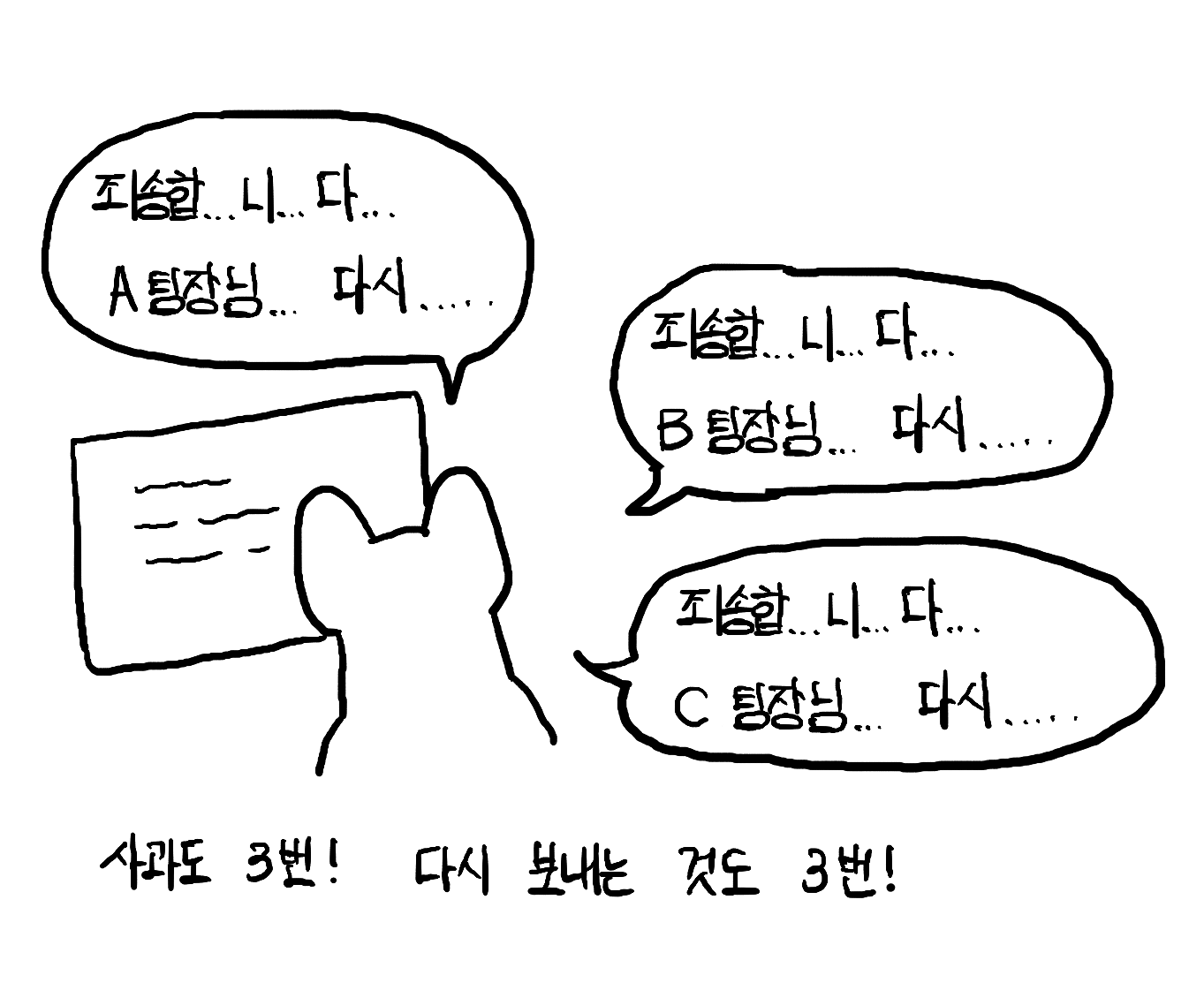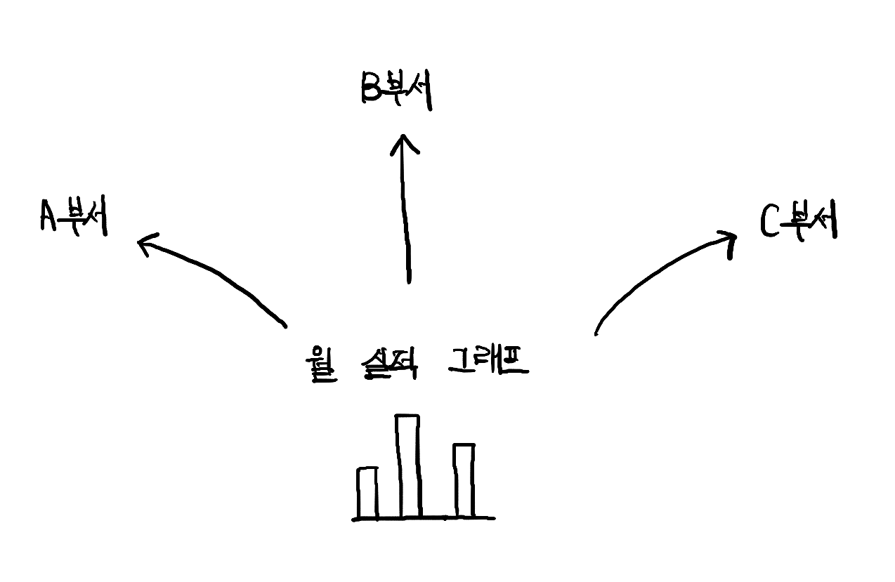 그래프야 빠르게 고쳤지만, 고라니군은 A, B, C 부서의 팀장님들에게 다시 데이터를 보내는 수고를 하게되었다. ▼