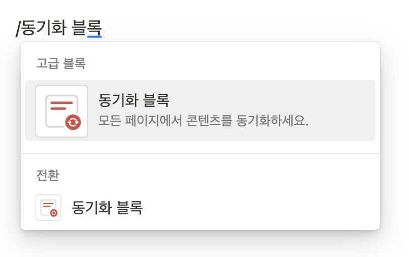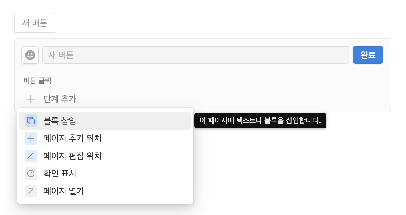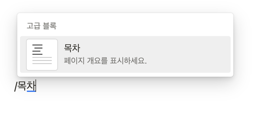 블록 삽입 아래에 있는 페이지 추가 위치와 페이지 편집 위치는 데이터베이스에 대한 내용이기에 추후에 다루도록 하겠다.