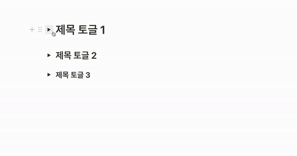 제목 토글은 # 과 스페이스 로 제목을 생성하고, 생성된 제목 블록에서 다시 > 와 스페이스 로 생성할 수 있다.