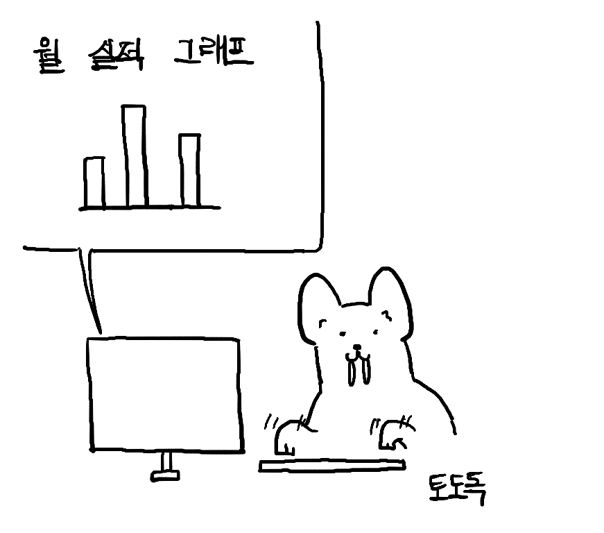 고라니군은 팀장님이 준 데이터로 열심히 그래프를 만들어 A, B, C 부서에 그래프를 전달했다. ▼