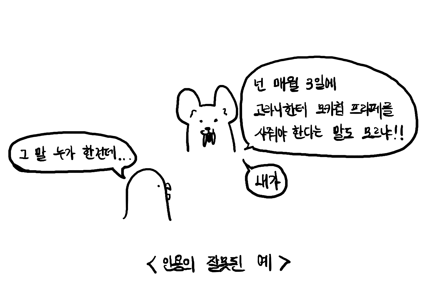 하지만 저희가 인용을 이용하는 진짜 이유는, 남의 말을 가져오는 이유는 저희의 주장이나 저희가 전달하고자 하는 바를 강조하기 위해서다.
