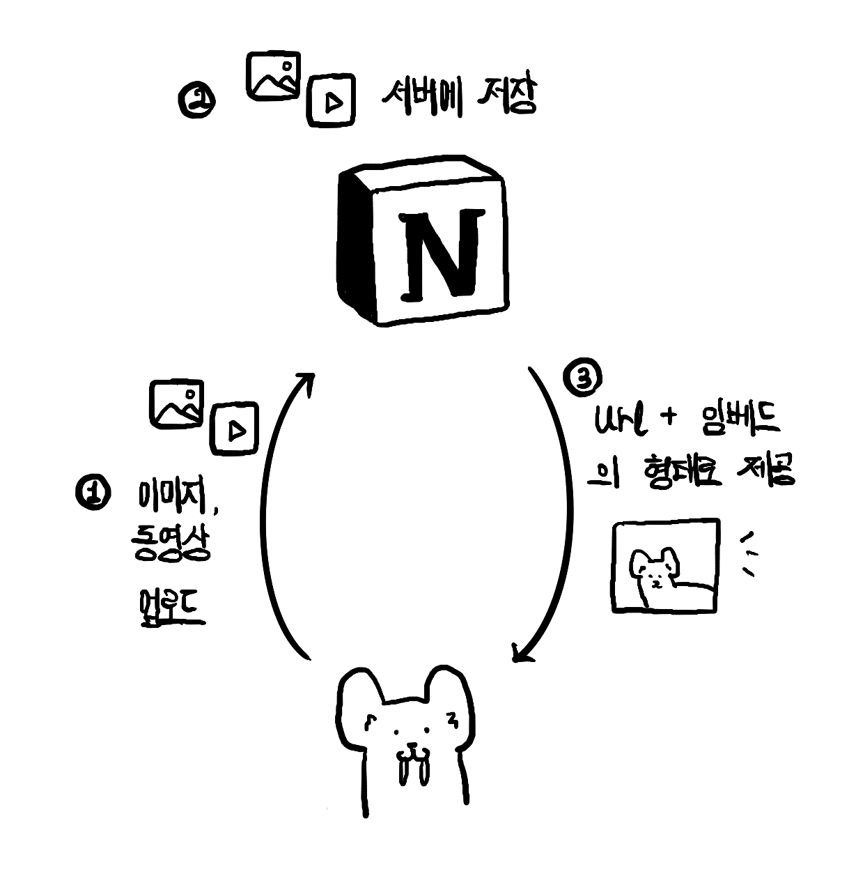 그리고 노션은 이렇게 서버에 올라온 이미지와 동영상을 다시 제공할 때, url로 제공하며 이를 임베드로 보여준다. ▼