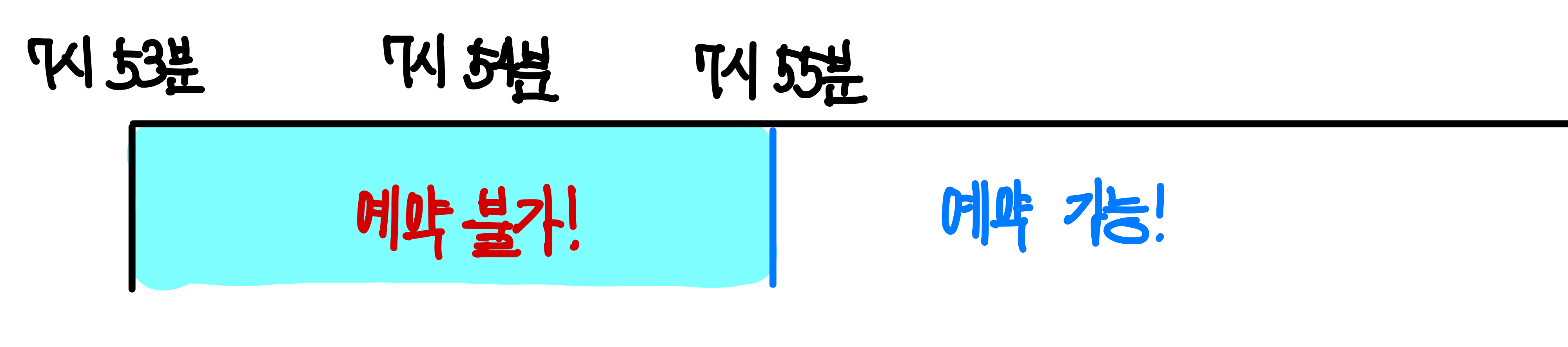 그렇기에 유저가 7시 53분에 예약을 하려고 하면, 지금 당장 예약이 가능한게 아니라 55분 이후의 시간만 예약이 가능하다.