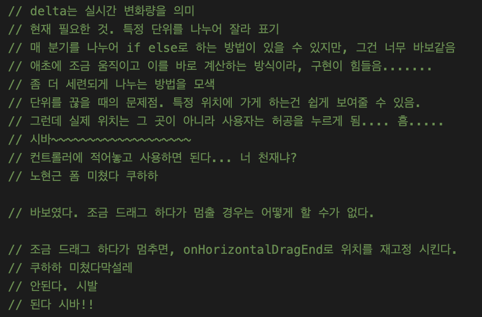 단순히 X축을 자유롭게 이동하는 것과는 다르게 생각할 것들이 많았다.
