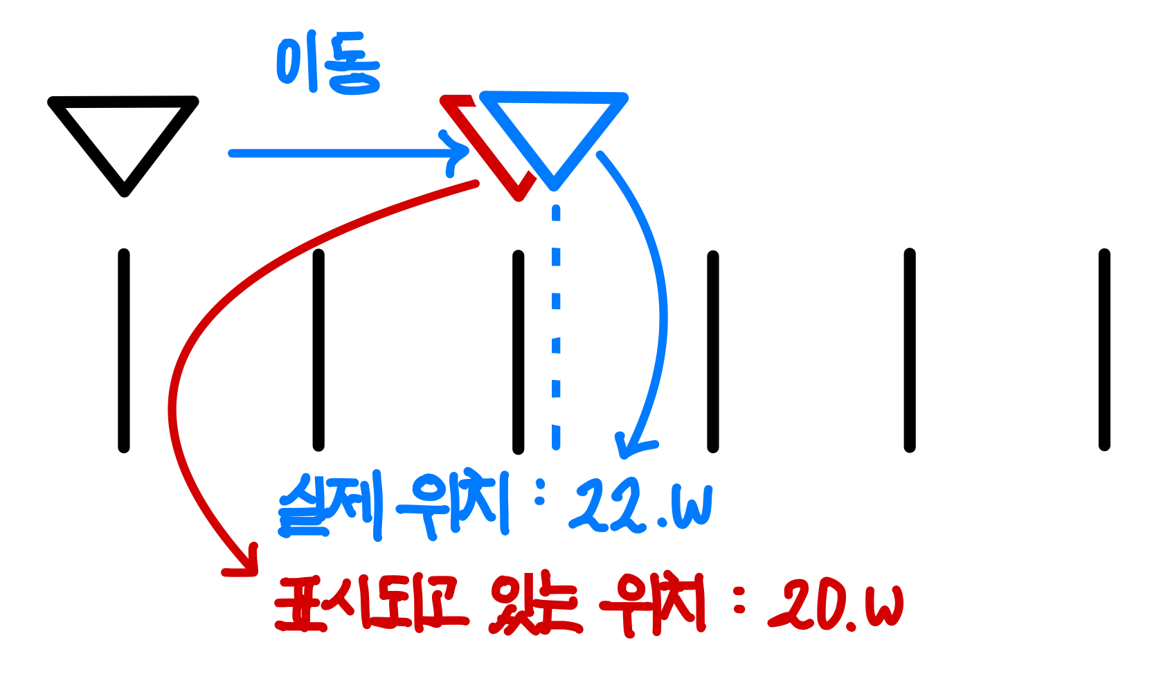 그렇기에 유저가 움직이는 것을 끝냈을 때, 실제 위치와 보정을 해줘야한다.