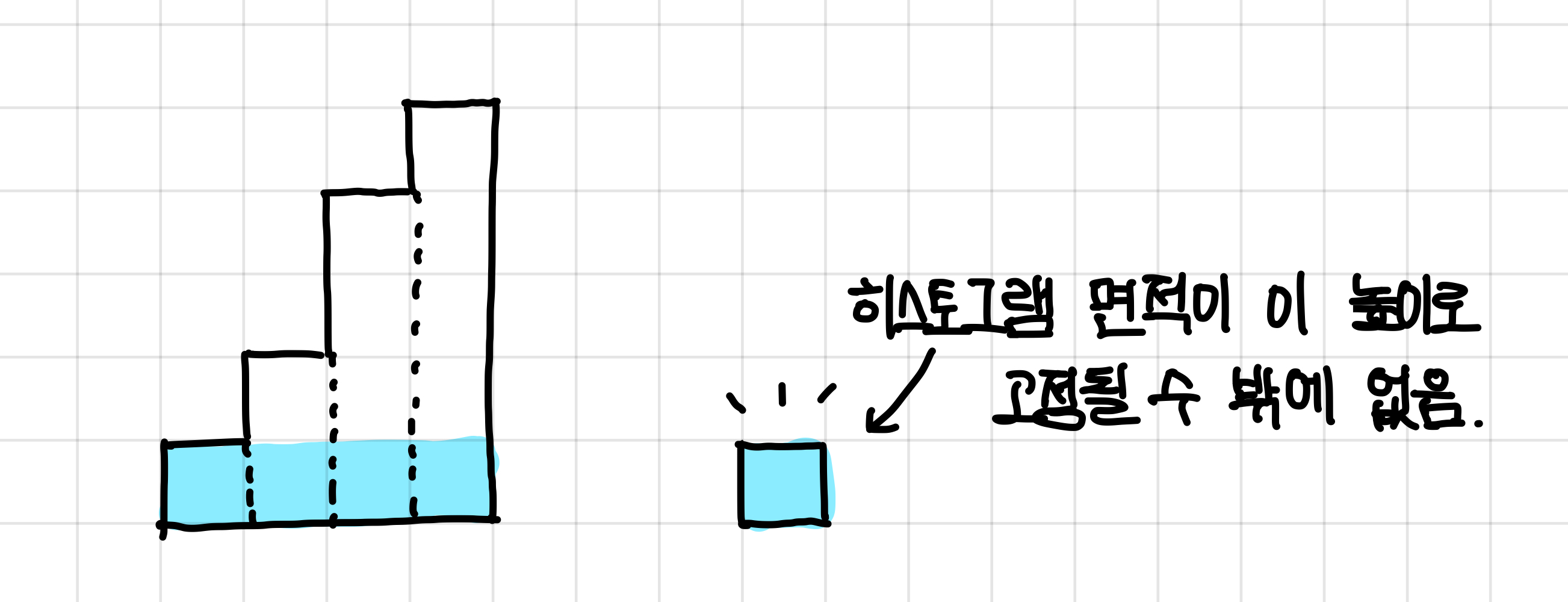 위의 값이 히스토그램의 면적 값이 된다.