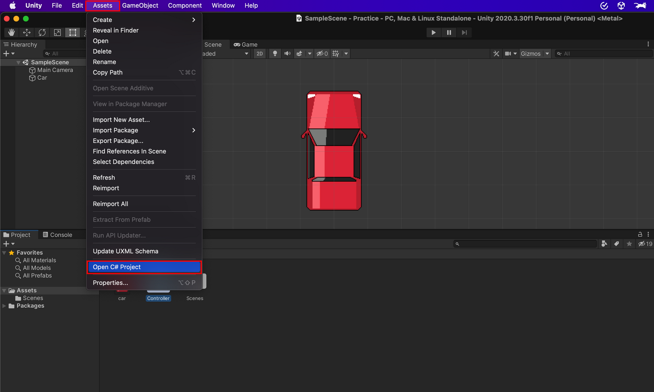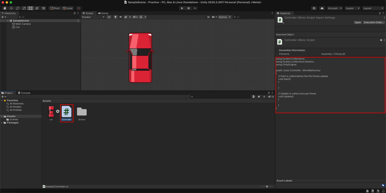 그러기 위해서는 자동차 오브젝트의 위치나 각도를 바꿔줄 코드가 필요한데, 그 코드를 Unity에서는 스크립트(Script)라고 부른다.