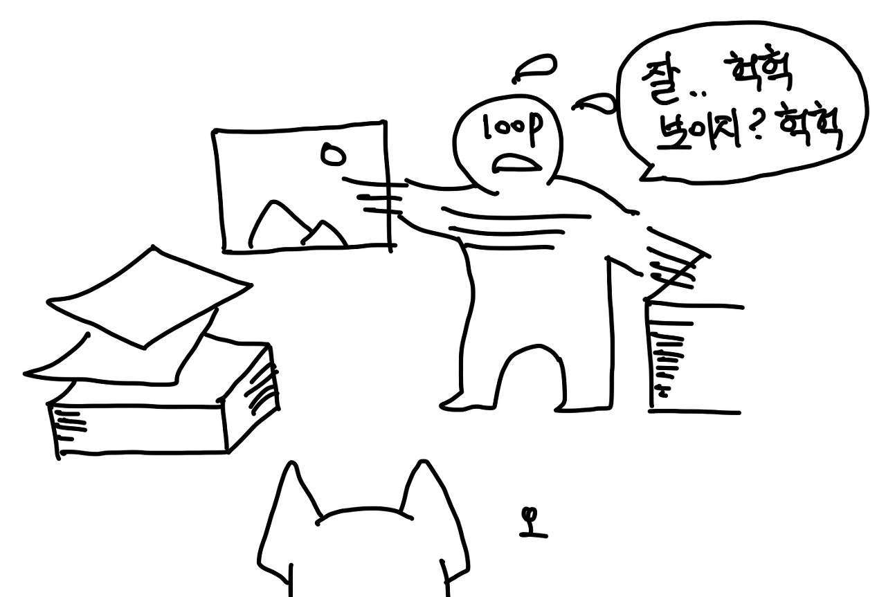 하지만 무한 루프를 통해 화면을 계속 그려주면 우리는 그제서야 화면을 볼 수 있다.▼