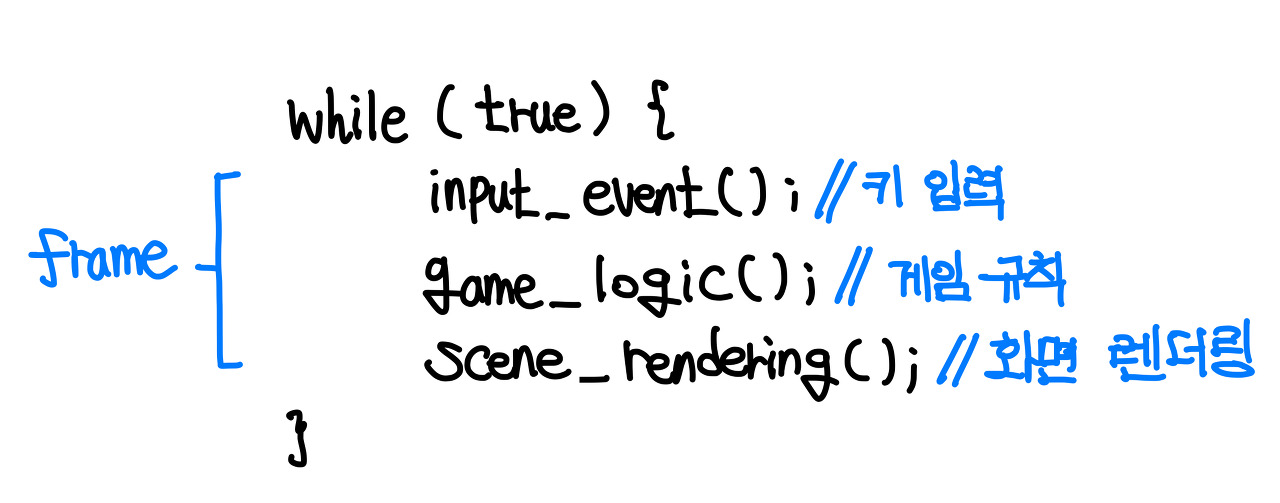 - 크게 input_event, game_logic, scene_rendering 의 반복으로 이루어져있다.