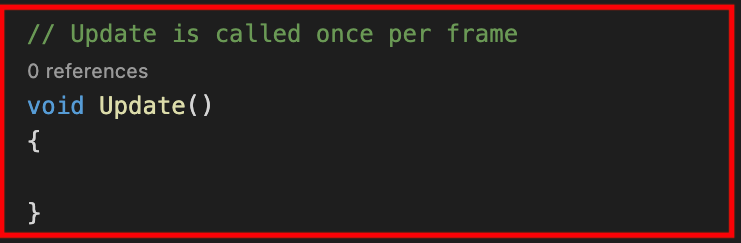 주석으로 적힌 설명 "Update is called once per frame"이라는 말은 해석 그대로 매 프레임마다 실행된다는 의미이다.▼