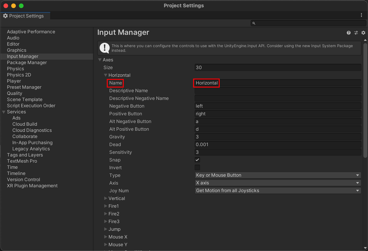 old system에 대해서 보려면 Input Manager를 봐야 하는데 Input Manager는 아래의 경로로 들어갈 수 있다.