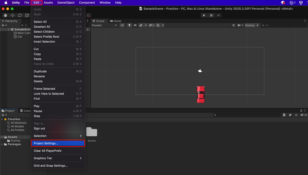 Edit 탭에서 Project Settings를 누르면 새로운 창이 하나 나올 것이다.▼