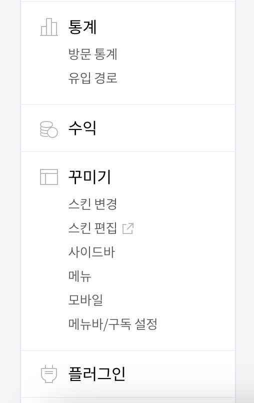블로그 관리 페이지 좌측 탭에 이렇게 관리를 쉽게 할 수 있게 해두었다.