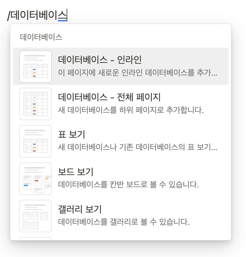 노션이 조금 더 완성도 있게, 더 많이 지원해주는 부분이 있지만, 사실 이 블록들보다 노션이 힘을 쓰고 있는 부분은 데이터베이스다.