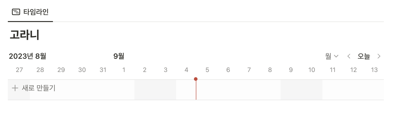 표와 리스트의 경우엔 보여줌의 차이가 크지 않지만, 캘린더와 타임라인, 보드, 캘린더의 경우에는 데이터베이스의 아이템들을 굉장히 효율적으로 보여줄 수 있다.