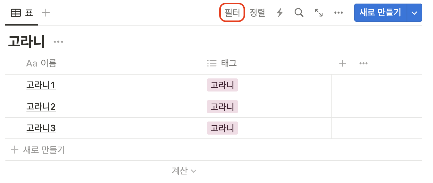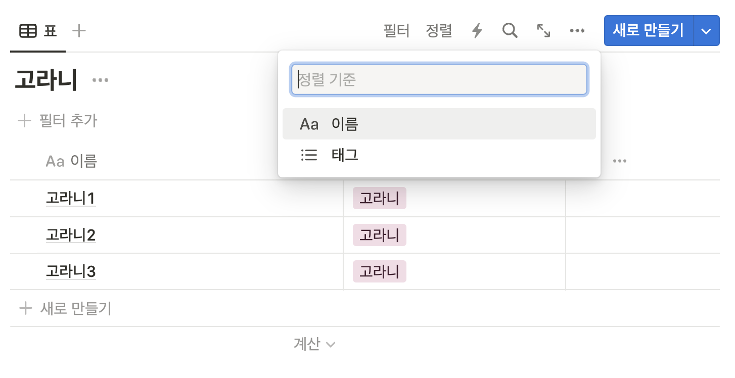 하지만 노션의 보기는 이와는 조금 다르다.